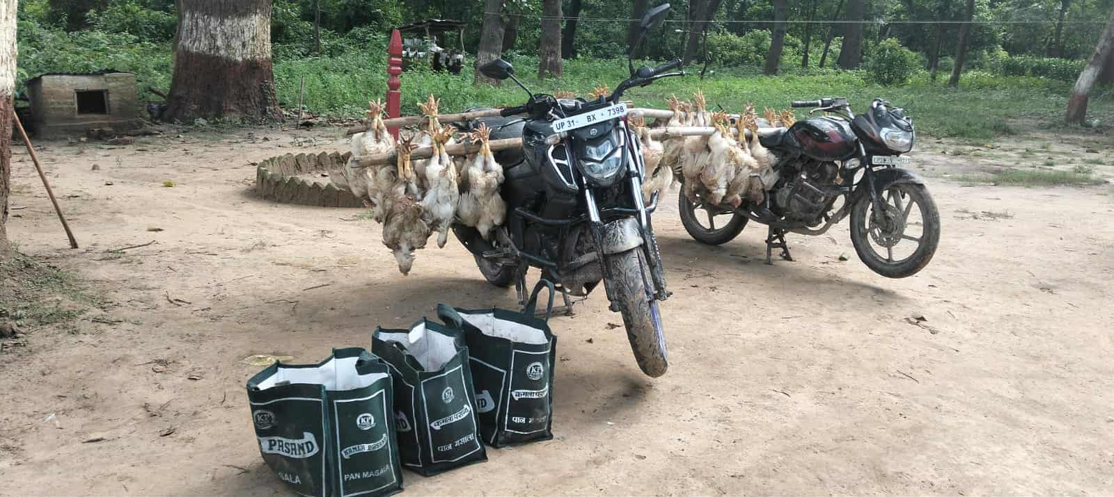 सशस्त्र प्रहरी बिओपी आपतालका इञ्चार्ज प्रहरी निरीक्षक टिकाराम रावलका अनुसार यु.पी.३१ बी एक्स ७३९८ नम्बरको यमहा कम्पन्नीको एफ जेट मोटर साईकल र यु.पी.३१ भी ०३१५ नम्बरको बजाज डिस्कभर मोटरसाईकलमा नेपाल भित्र्याई रहेको अवस्थामा १३४ के.जि. प्रतिबन्धित बोईलर कुखुरा, ८० के.जि. माछा र ८ क्यारेड सेतो अण्डा सहित एक जनालाई नियन्त्रणमा लिइएको हो ।