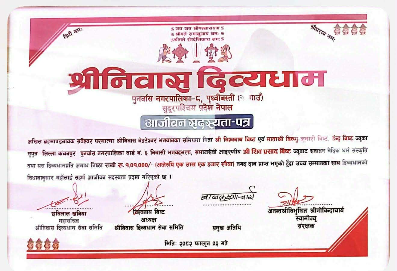 बिष्टले बुवा बिश्वनाथ बिष्ट आमा बिष्नु माया बिष्ट,इन्दु कडरिया विष्ट श्रीमान गोमा बिष्ट मार्फत अक्षयकोष रकम बिद्यालय हरूलाई हस्तान्तरण गर्दै आएका छन भने बिद्यालयले पनि सम्मान स्वरूप बिद्यालय मा आयोजना हुने समारोहबीच शिव बिष्टका अभिभावकलाई सम्मान गर्दै आएको छ।त्यसैगरी पुनर्वास ८ स्थित श्रीनिवास दिव्यधाममा नगद १ लाख १ हजार रकम प्रदान गरि आजिवन सदस्य बनेका छन ।